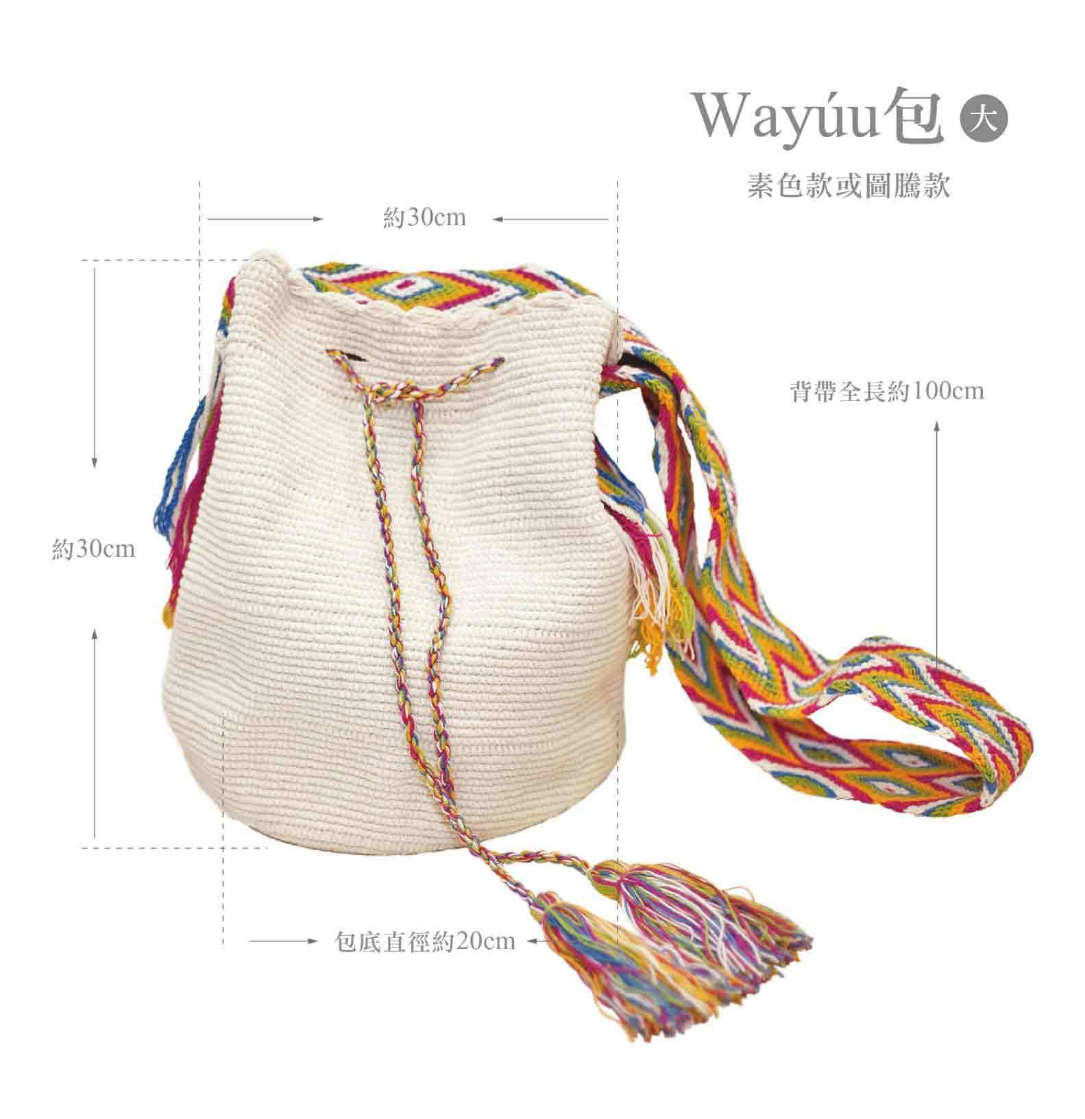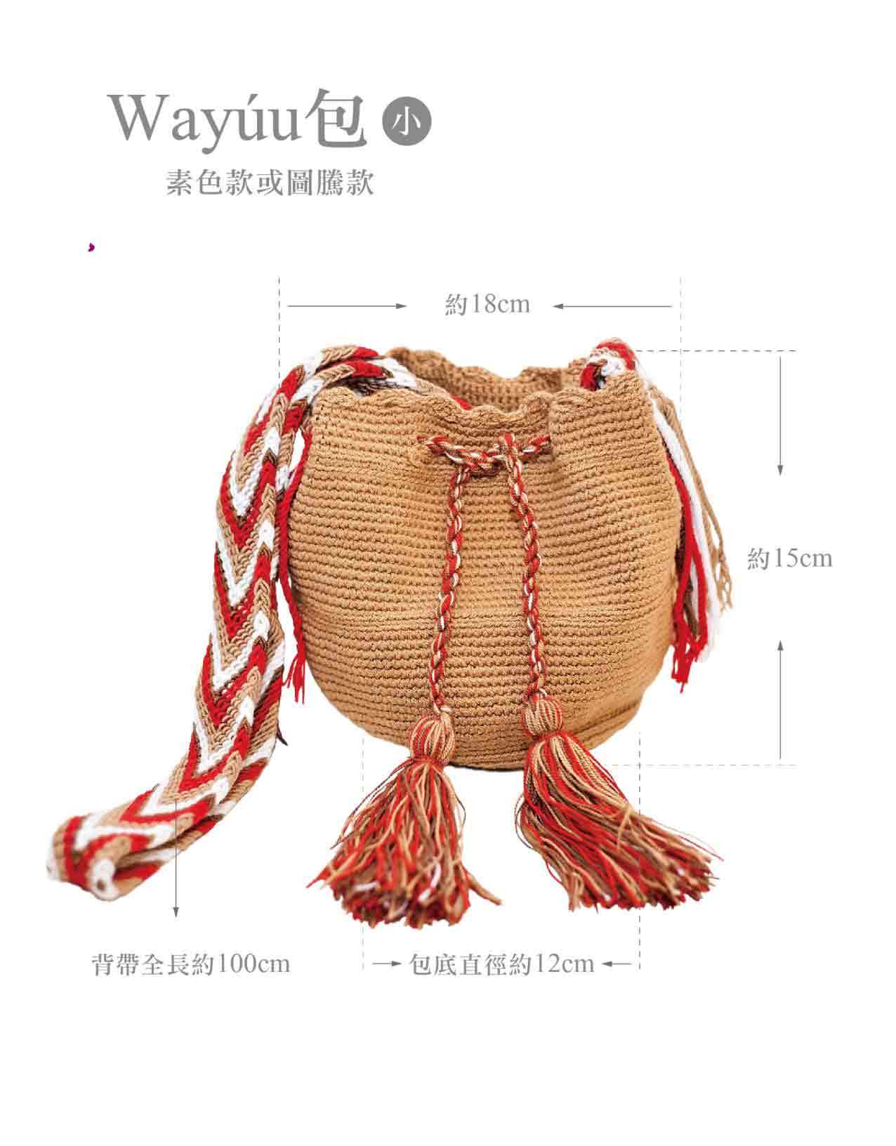 南美哥倫比亞瓦尤民族( Wayúu )的手工編織包,原為瓦尤部落的日常生活用品,為部落女性親手編織,每種款式圖案因手工編織僅有一個,每個瓦尤包呈現部落美好的工藝傳統。